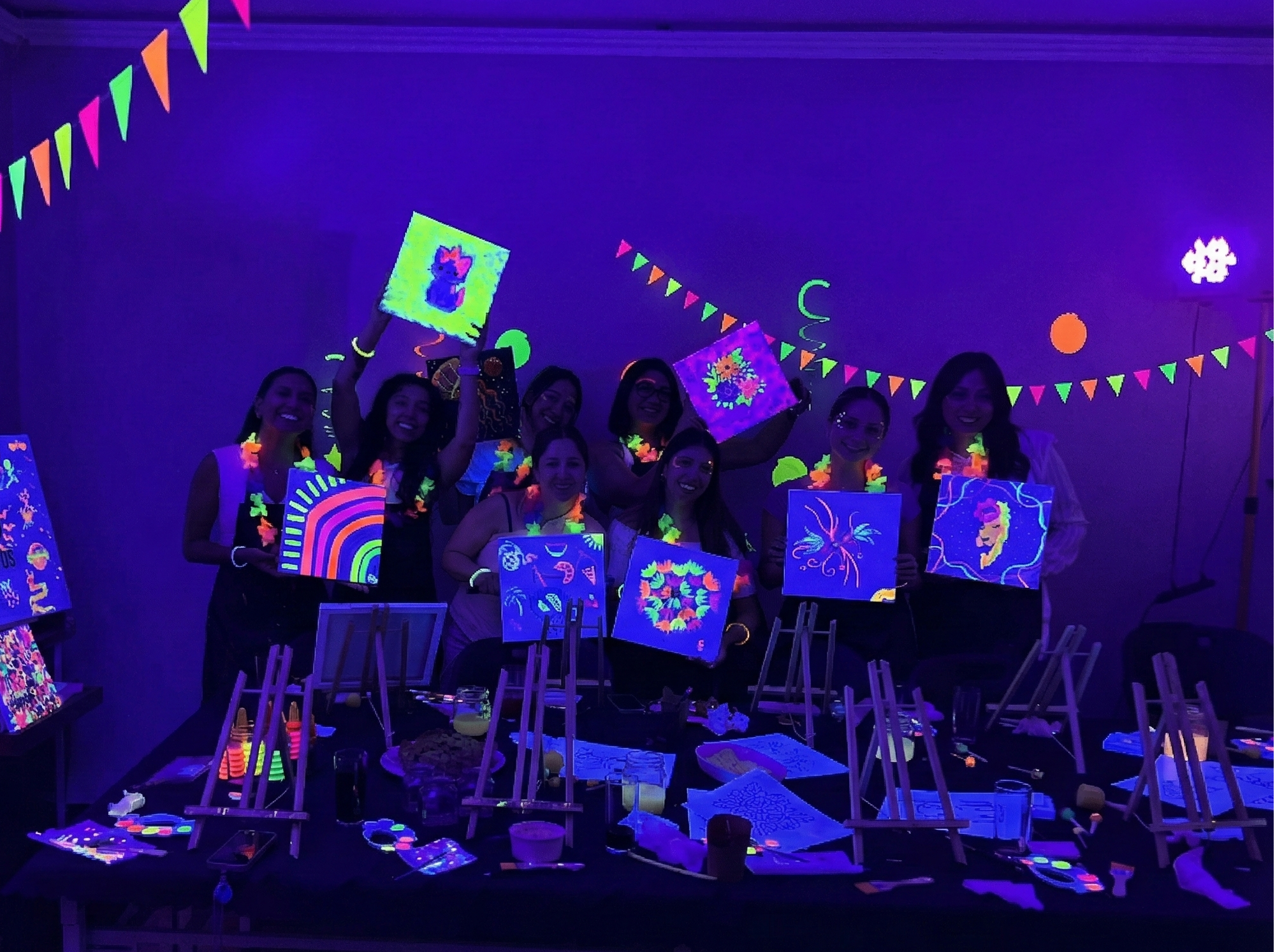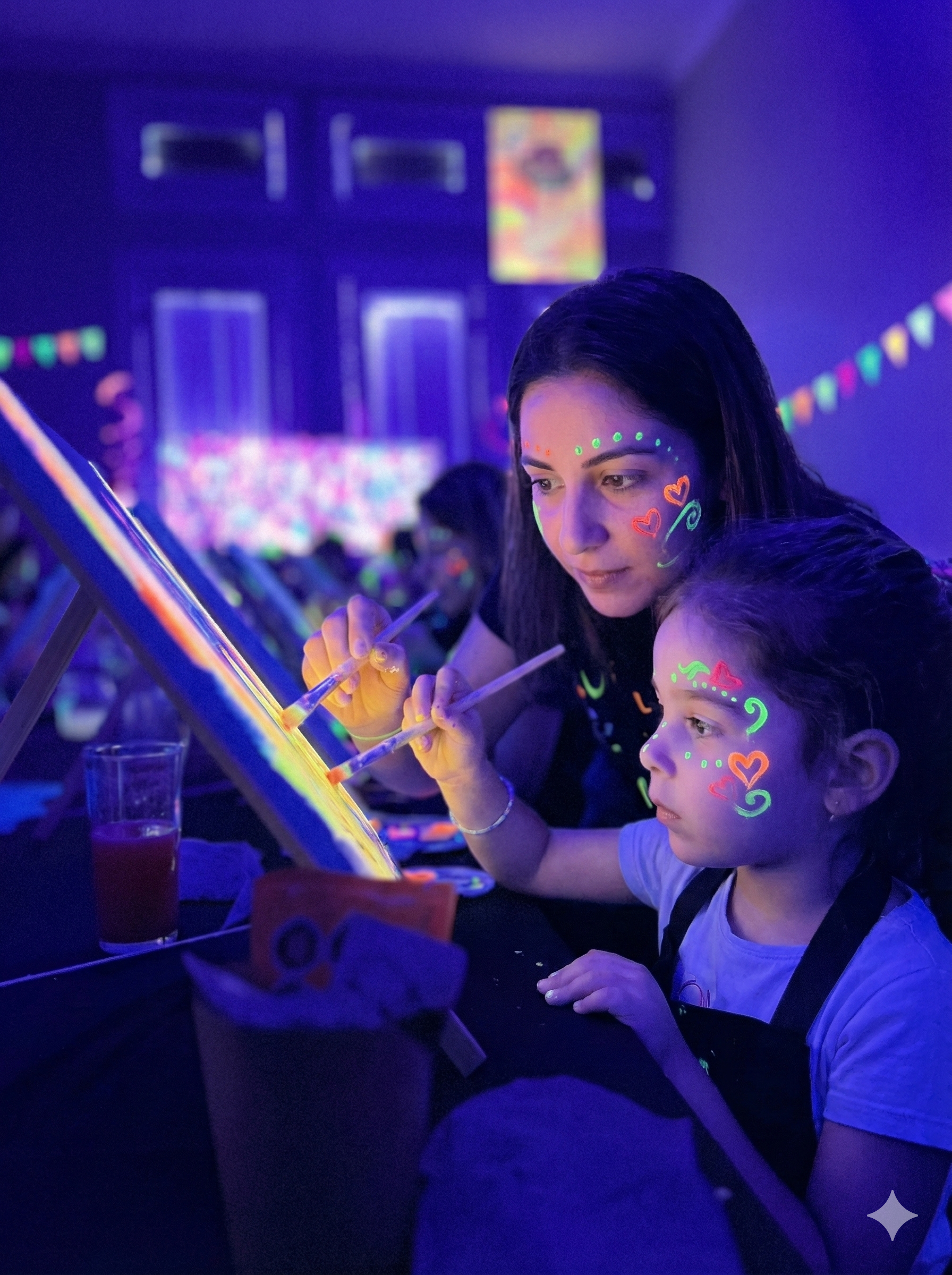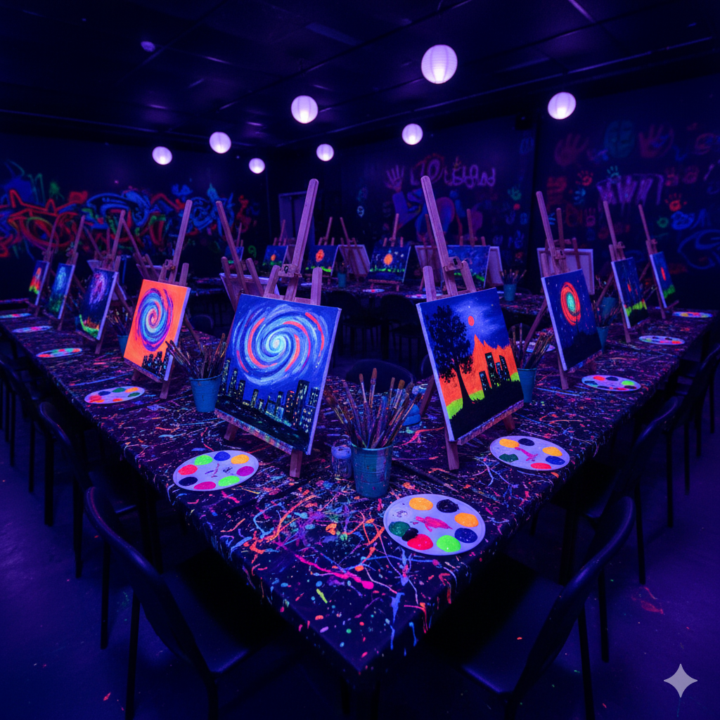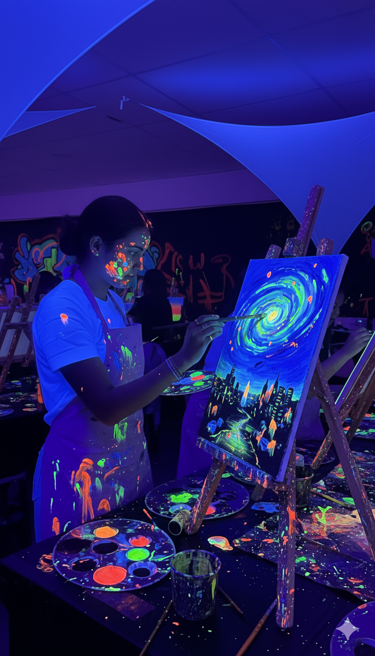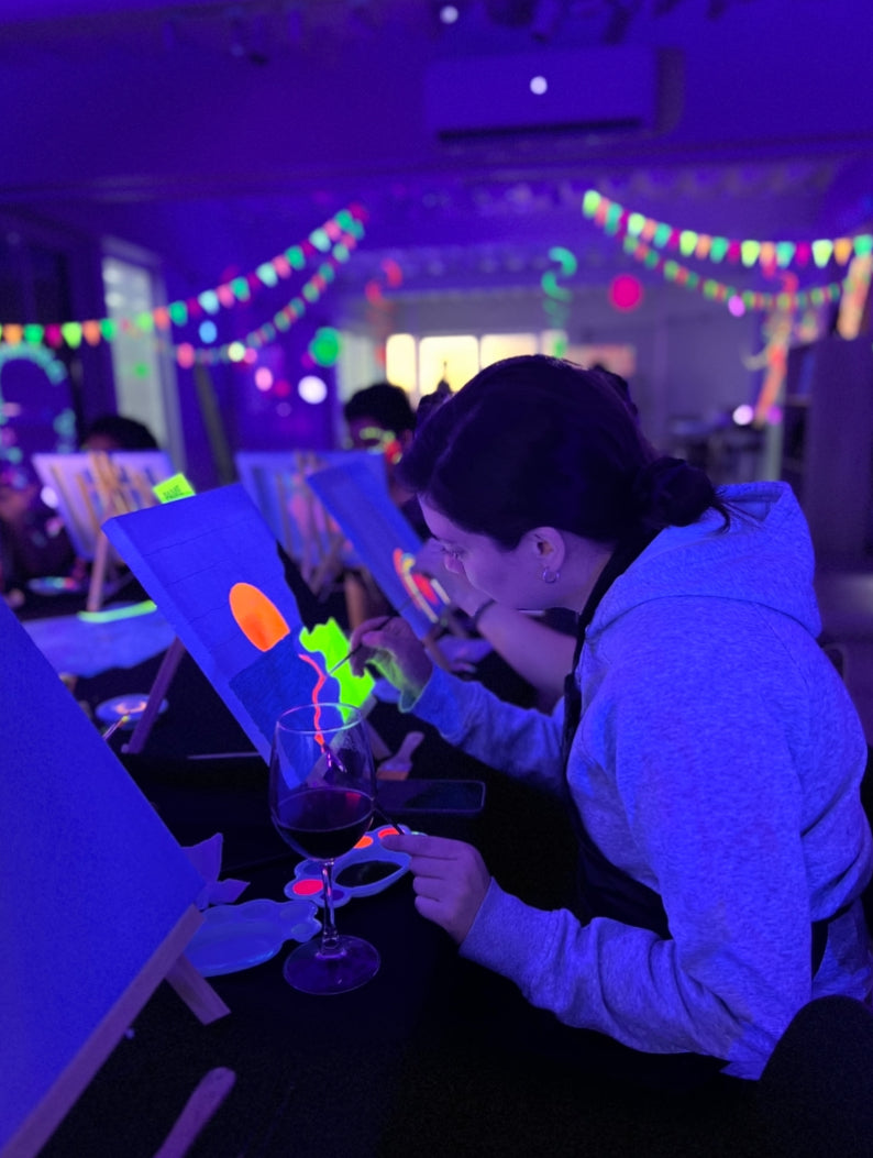 Aquí, no importa si nunca has tomado un pincel; solo importa la diversión y el deseo de crear algo único. Nuestro ambiente con luz UV transforma un simple lienzo en una experiencia mágica donde tú, tu partner o tu familia son los verdaderos artistas.